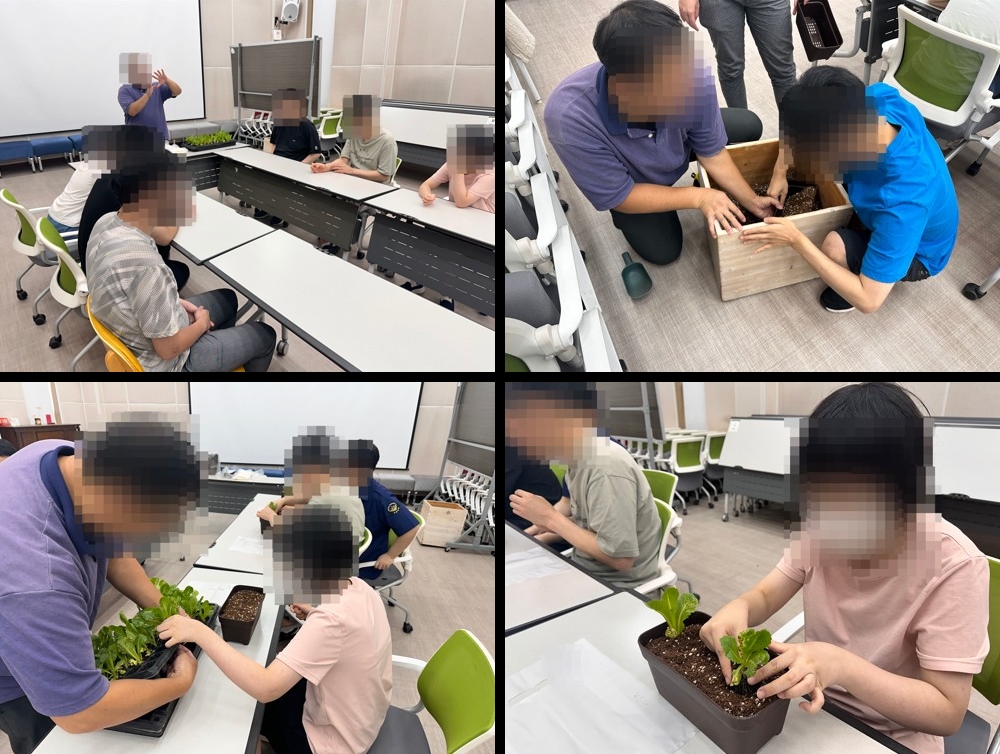 더운 날씨지만 가정에서 재배할 수 있는 엽채류 중 상추 모종을 화분에 옮겨심는 활동을 진행했습니다. ^^