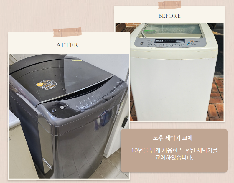 또한 10년 이상 사용하고 있는 세탁기를 교체하고, 행주용 건조기를 설치하여