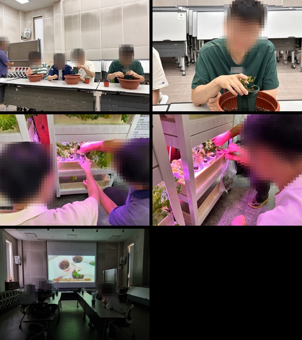 금주도 이어지는 폭염으로 실내 프로그램을 진행했습니다. 8월까지는 계속 농작물 재료를 구하기 어려워 1학기에 했었던 엘란(사계절딸기)을 화분에 분갈이 하는 활동을 진행했습니다. 그리고 스마트팜을 통해 실내에서 재배 중인 상추를 수확하는 활동도 진행했습니다. ^^